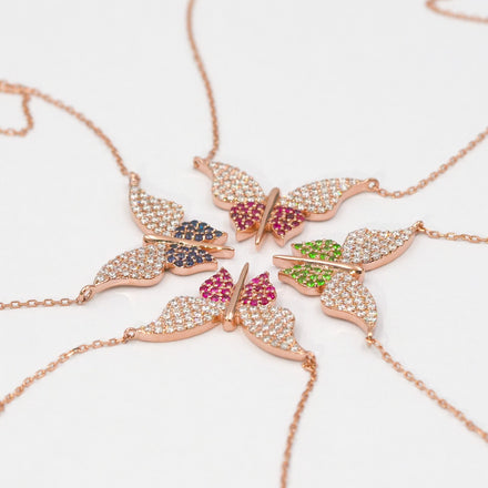 Butterfly Blue Sapphire Necklace – 18K Rose Gold